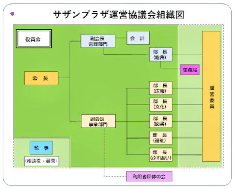 サザンプラザ運営協議会の役員体制および組織図をご案内します。